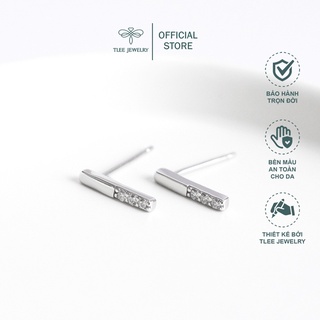 Khuyên tai bạc nữ TLEE thanh bạc nạm đá nửa xinh xắn TleeJewelry B0131