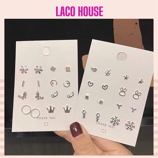 (Bạc 925) Set 8 đôi bông tai nữ mạc bạc 925 cao cấp lacohouse BT02
