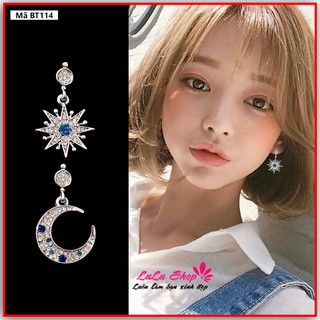 Khuyên tai nữ cá tính bất đối xứng trăng sao nổi bật - Bông tai BT114