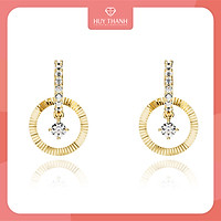Bông Tai Nữ Vàng 14K Họa Tiết Hình Tròn Rơi Đơn Giản Đính Đá CZ Cao Cấp Lấp Lánh BTPTB349 Huy Thanh Jewelry
