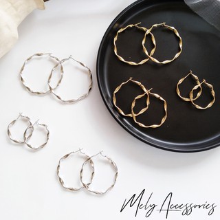 Bông tai khoen tròn dạng xoắn cá tính dành cho nữ màu vàng bạc - Mely 071