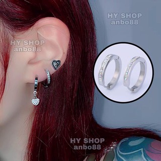 Bông Tai Titan Ko Han Rỉ Khoen Tròn Đá Tòn Ten TT 4044