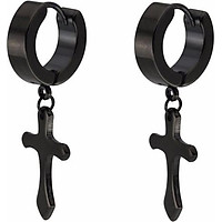Khuyên tai unisex titan kẹp vành hai chữ thập phong cách gothic