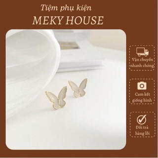 Khuyên tai bông tai nữ hình cánh bướm trắng viền vàng thanh lịch sang trọng phong cách hàn quốc