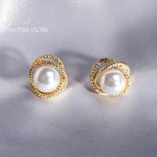 (Chuôi bạc 925) Khuyên tai bông tai nữ xoắn vàng đẹp dự tiệc Ring House