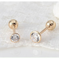 Bông tai Vàng 14KY đính đá CZ kiểu Bezel - MOON Jewelry