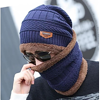 Set mũ len nam kèm khăn ống lót lông