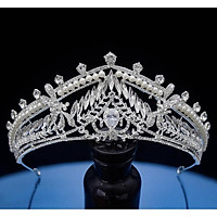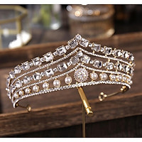 Vương miện cô dâu 12/2020 đá vuông đính hạt trai kiểu dáng cây thông SP220566