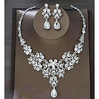 Bộ trang sức vương miện cô dâu, vòng cổ và bông tai full đá lấp lánh