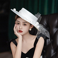 Mũ cổ điển đen đính Hoa hồng trắng phối lưới phong cách mới Giangpkc SP2219521