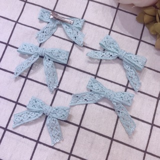 Kẹp tóc mái nơ ren xanh dễ thương cho bé gái