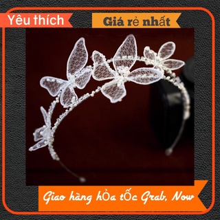 Cài Tóc Cô Dâu hình bướm ren màu trắng