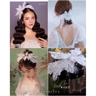 cài hoa ren kết hạt, kim sa.hoa cài tóc cô dâu
