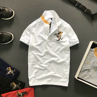 Áo thun nam ngắn tay có cổ thêu họa tiết ngựa cao cấp