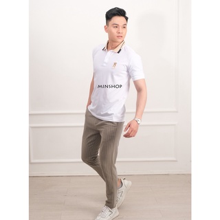 Áo thun polo nam KINGMEN vải cotton cá sấu cao cấp form đẹp phối sọc dọc cá tính có cổ tay ngắn - PL05 - Fullbox
