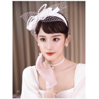 Voan cài tóc cô dâu ngắn 50cm đính nơ phí bóng bướm kèm hoa rơi - voan cô dâu tháng 9-2020 GIANG pkc