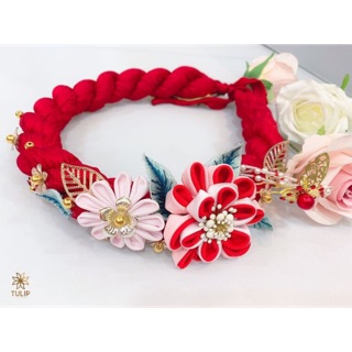 Mấn cô dâu đính hoa kanzashi kèm châm cài