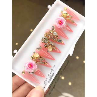 NAILBOX - Phom nhọn dài Sơn thạch đính full hoa đá