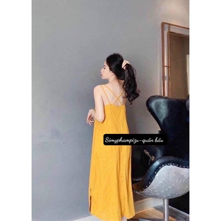Váy 2 dây đẹp - Đầm bầu maxi chất đũi đan lưng mặc đi biển đi chơi đều đẹp V266