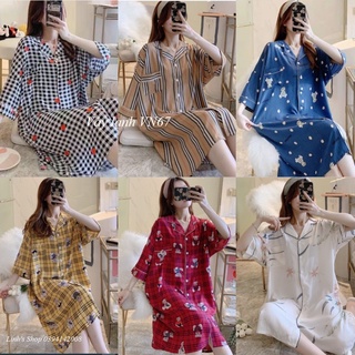 Áo bầu babby doll có cúc mở cho bé ti chất đũi tơ mát lạnh, from rộng thoải mái cho mẹ bầu