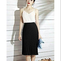 Chân váy xòe midi New Design thiết kế lưng cao kèm dây nịt vải cùng tông thanh lịch vải kaki thun co giãn