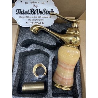Vòi Lavabo Rửa Mặt Mạ Vàng Thân Đá Cao 20cm , Vòi Cắm Chậu Tặng 2 Dây Cấp Nước Cao Cấp