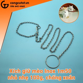 Xích giữ mèo Inox 1m50 nhỏ nhẹ 100g, chống xoắn, có thể tháo thành xích ngắn