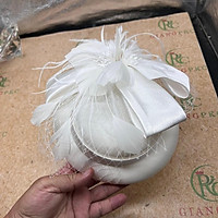 Mũ công nương trắng lông vũ đính nơ lưới mới TP HCM Giangpkc 2022