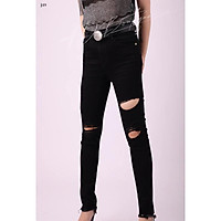 Quần Jeans Đen ôm rách cách điệu - J49 - Đen, Đen