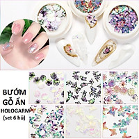 Set 6 Hủ Bướm Hologram Gỗ Ẩn Trang Trí Móng