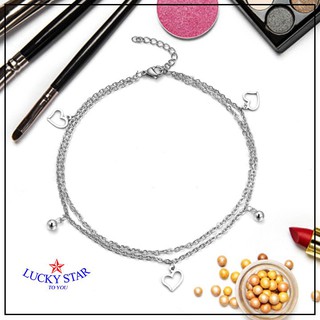 Lắc chân inox trái tim rỗng 2 tầng đính bi đáng yêu