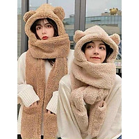 Mũ gấu kèm khăn xỏ tay bông cực ấm cao cấp cute