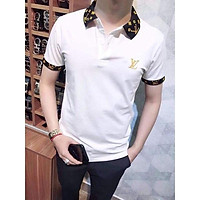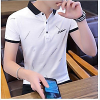 Áo thun polo nam có cổ tay ngắn vải thun cotton co giãn thêu họa tiết