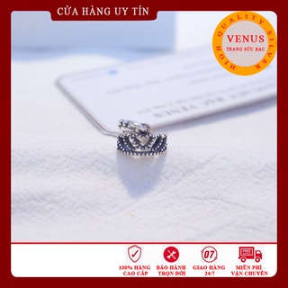 Charm bạc chặn hạt hình đĩa bay họa tiết - NQ Jewelry