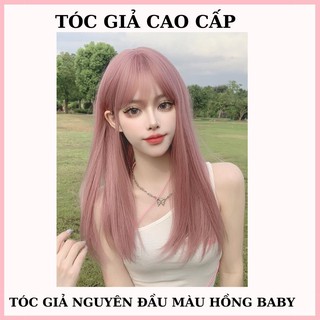 Tóc giả nguyên đầu màu hồng baby, tặng kèm lưới trùm tóc giả, ms1799