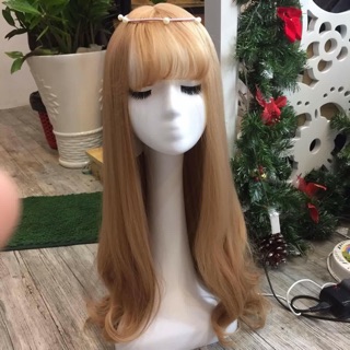 Tóc giả nguyên đầu dài CAO CẤP xoăn sóng nước mái thưa Hàn Quốc – tặng lưới tóc