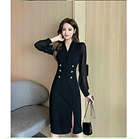 đầm thun gân - Đầm cổ bẻ tăm gân ôm body dáng dài