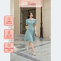 Đầm công sở dáng chữ a thời trang Eden cổ nơ - D505