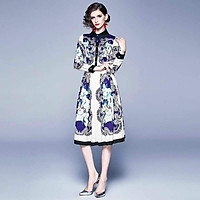 HÀNG NHẬP - ĐẦM XÒE LỤA IN HOA VĂN CỔ SƠ MI