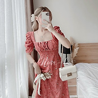 Đầm hoa cổ vuông tay phồng tiểu thư