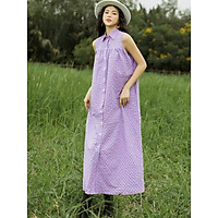 Đầm tím suông sát nách cổ sơ mi NGADO , đầm kẻ caro , đầm