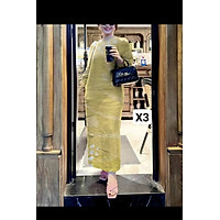 Đầm Hai Dây Suông, Đầm xẻ tà, Đầm Vàng Linen Kim Diệp thời trang thiết kế Hity Dre208