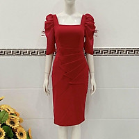 Đầm công sở thiết kế-Váy cổ vuông nhún thân trước đi làm hay đi chơi cực xinh