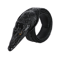 Dây nịt nam da cá sấu Huy Hoàng nguyên con lớn đầu cá sấu màu đen HP4252