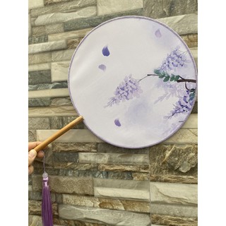 ( M65 ) Quạt tròn cổ trang cầm tay cán dài in hình TỬ ĐINH HƯƠNG gắn dây tuyến cosplay xinh xắn