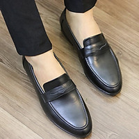 Giày da nam cổ thấp HM màu đen, giày lười mọi nam màu nâu công sở da thật TONKIN