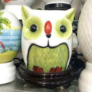 Đèn xông tinh dầu cú đế gỗ Bát Tràng