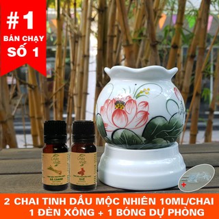 Combo 1 đèn xông tinh dầu + 2 tinh dầu 10ml Mộc Nhiên (có kiểm định) + 1 bóng đèn dự phòng