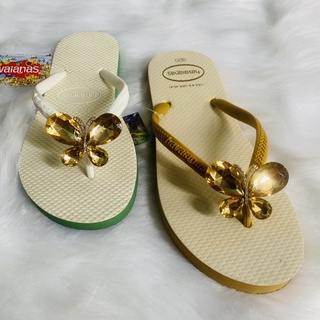 Dép kẹp nữ đính Charm bướm RUBY vàng, dép tông Havaianas 2 tầng mẫu mới hàng handmade siêu hot