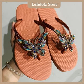 Dép kẹp xốp cao su ép xỏ ngón, tông Thái Havaianas đính charm đá - Lululola